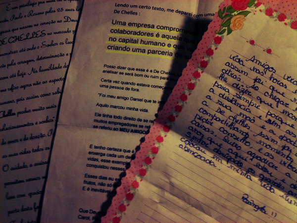 Na última segunda-feira, a De Chelles completou 25 anos de muito trabalho, empenho, conquistas e realizações. Mesmo assim, em meio a tantas coisas boas, sem dúvidas nosso maior presente é a confiança dos nossos clientes e funcionários. Sim, porque nossos funcionários são como partes da nossa família. E ficamos muito felizes por saber que eles realmente se sentem assim. Tanto que é inexplicável a alegria que sentimos ao receber várias cartinhas emocionantes, que falam de amizade e partilha, cheias de amor e carinho entre todos que ajudam a construir a história da De Chelles. É tanta coisa legal que em breve vamos mostrar esses depoimentos em vídeos!