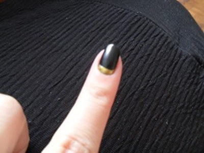 Primeiro ela pintou as unhas com o preto fosco e esperou secar.