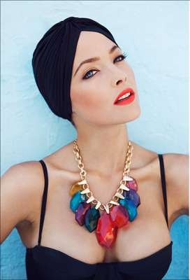 Como acessórios para biquinis e maiôs, vale apostar em belíssimos turbantes e colares de pedras grandes e coloridas.