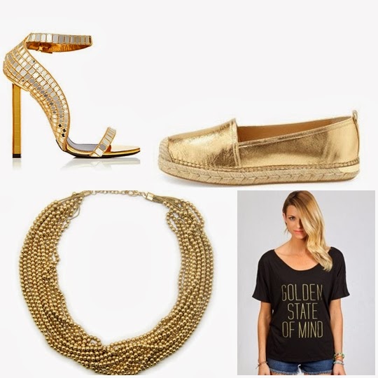 O toque do ouro deixa calças, casacos mais chiques. O cotidiano vira pura festa.