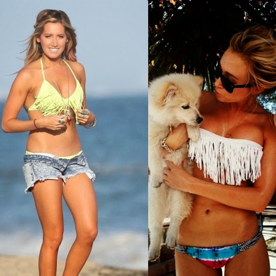 Os biquinis e maiôs com franja são o charme da estação. As franjas criam um visual diferenciado na peça e, para quem tem seios pequenos, ainda ajuda a dar mais volume de forma natural. Uma peça com franja bem produzida cai bem em vários tipos de corpo e você pode apostar sem medo nesse verão.