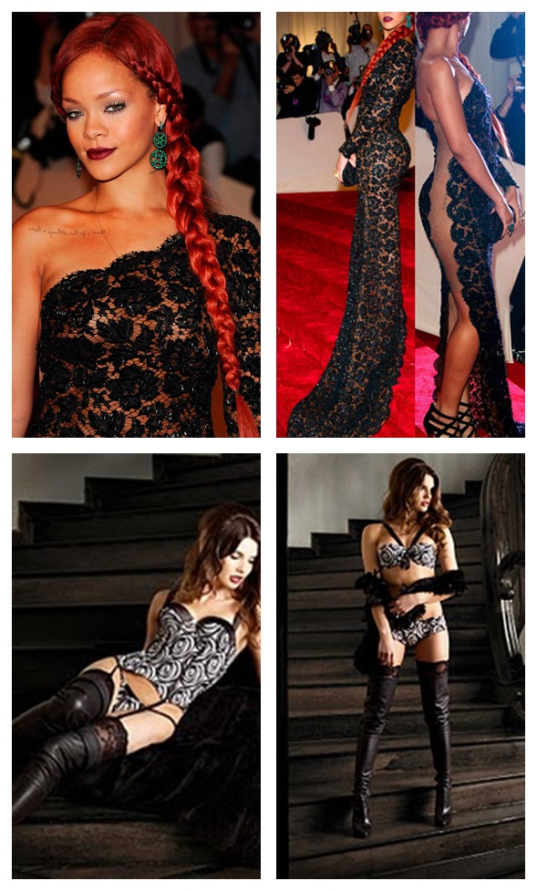 Rhianna abusou da renda e das transparências pretas vestida de Stella McCartney.