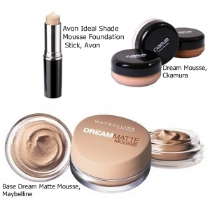 Opções: Base Dream Matte Mousse, Maybelline; Dream Mousse, Ckamura, Avon Ideal Shade Mousse Foundation Stick, Avon.
