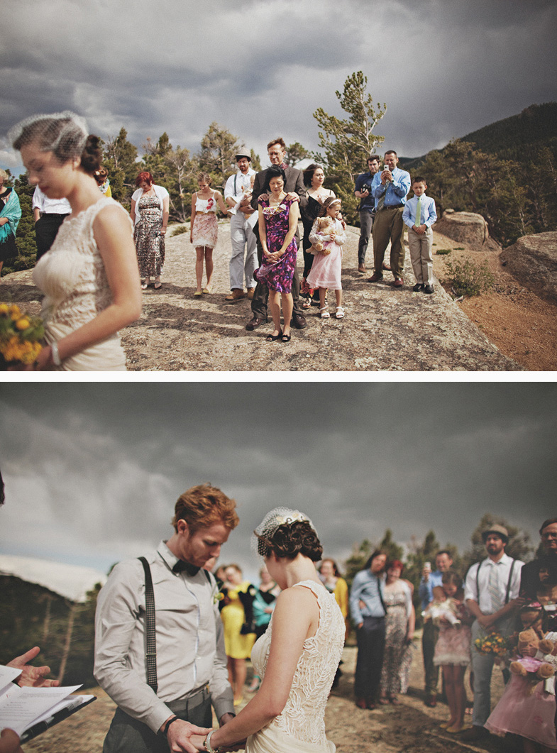 Duas coisas chamaram atenção nesse casamento pra lá de original. Primeiro, a opção pelo retrô. Cabelo, maquiagem e objetos remetendo aos anos 50, tudo muito delicado, a começar pelas rendas do vestido. Em segundo, o lugar escolhido para a cerimônia: o alto das montanhas. Lindo !!