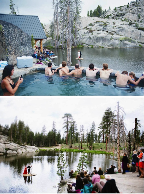 Bom, o que queremos chamar a atenção nessa história toda é que foi em cima dessas pranchas que um casal de noivos americanos se encontrou para o grande momento de suas vidas. Eles se casaram em um lago, e para chegar até o meio do lago, onde seria realizada a cerimônia, usaram a criatividade.