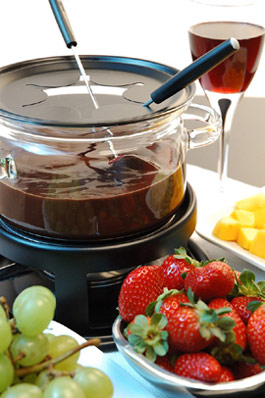 Agora, se não gosta de misturar doce com salgado, invista no doce. O foundue de chocolate, de sobremesa, é tudo de bom.