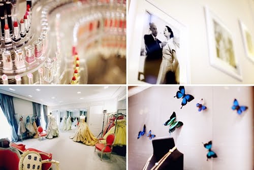 O atelier e os vestidos em estilo clássico são super charmosos e cheios de glamour! As imagens antigas na parede também remetem a uma época de ouro da marca. Nós amamos cada detalhe das imagens e vocês?