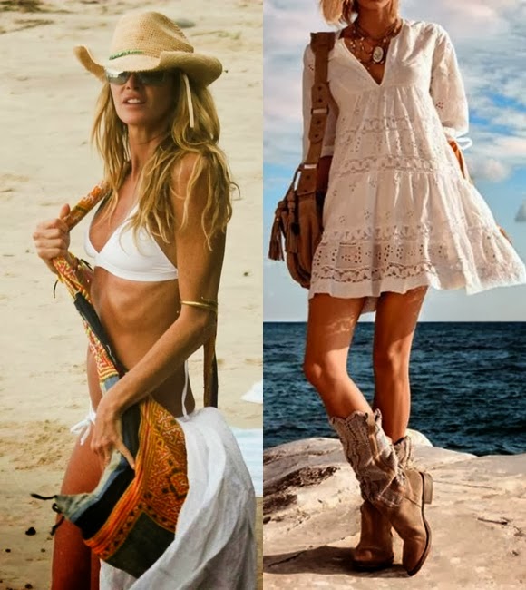 As batas, vestidos esvoaçantes, colares e brincos compridos (de preferência de pena), peças artesanais, botinhas cowboy e rasteirinhas são peças que se aplicam perfeitamente ao jeito boho de ser.