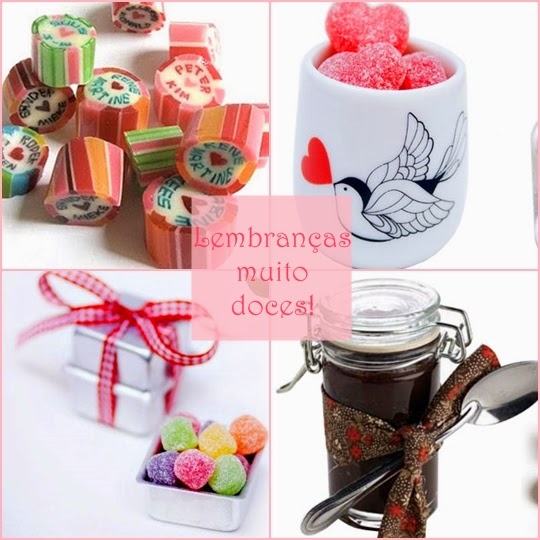 E falando de comida, esse tipo de presente é uma possibilidade deliciosa que agrada todos os convidados e, muitas vezes, ao bolso dos noivos. Latinhas com jujubas coloridas, doces para comer com colher e balas com o nome dos respectivos, são boas ideias!