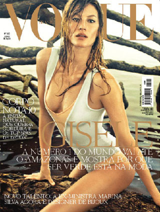 A edição de Julho da Revista Vogue brasileira vai trazer quatro capas com a top Gisele Bündchen.  Em três imagens, Gisele aparece em meio a natureza, já que a reportagem principal com ela fala sobre a Amazônia.