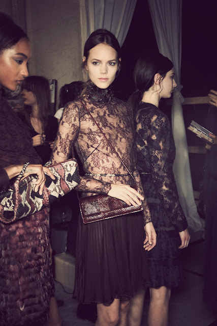 Rendas em destaque5 de setembro de 2011|In Lingerie|By universodechellesA bela Freja Beha Erichsen estrelou o desfile e a campanha de outono de Valentino. Reparem como o preto e a renda estão em destaque. E vocês não podem ficar de fora. Que tal a lingerie De Chelles no clima de Valentino?