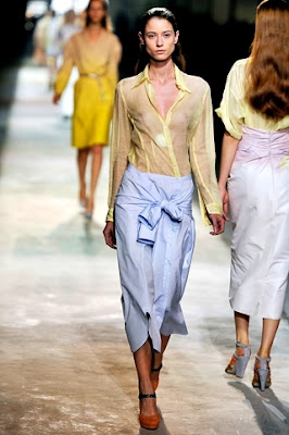 Não é de hoje que as peças masculinas invadiram o vestuário feminino – shorts boyfriends, coturnos, oxfords, gravata que vira cinto… E não para por aí. Descobrimos também que mais uma peça – bem típica, aliás – promete tomar conta dos nossos mais profundos desejos fashionistas: a camisa social. A diferença é que ela anda sendo usada como saia. Isso mesmo! Apareceu no desfile da Dries Van Noten, nas ruas do Fashion Rio… e até já tem gente ensinando a usar. É só fechar a parte da gola na cintura e amarrar as mangas, vejam: