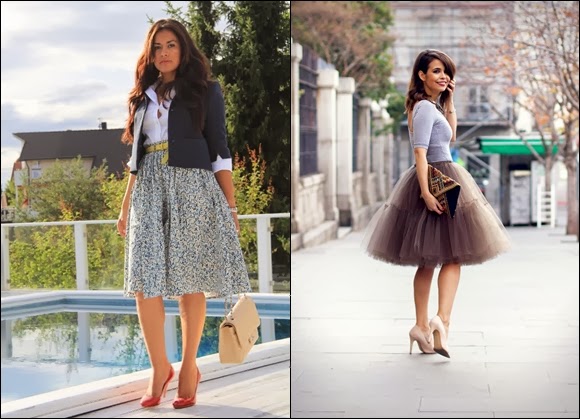 O uso da saia mídi com sapatilhas e rasteiras fica melhor para as mulheres altas, magras e com pernas longas, do contrário, achata a silhueta. Uma opção é fazer um look monocrático para passar a impressão de uma silhueta mais alongada.